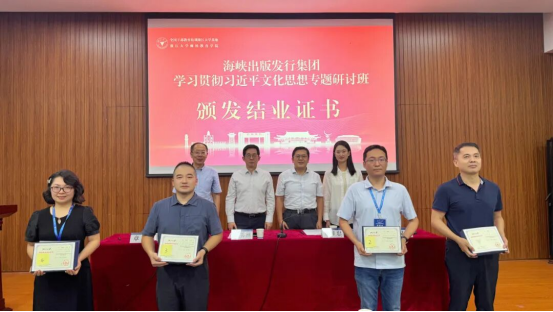 9月22日至26日,海峽出版發(fā)行集團學(xué)習(xí)貫徹習(xí)近平文化思想專題研討班在浙江大學(xué)舉辦。集團黨委書記、董事長黃葦洲出席結(jié)業(yè)式并作總結(jié)講話,集團黨委副書記、總經(jīng)理嚴(yán)桂忠出席開班式并作動員講話。集團領(lǐng)導(dǎo)謝興權(quán)、陳愛民、陳遠,所屬單位和總部部門比照處級管理干部共57人參加學(xué)習(xí)培訓(xùn)。