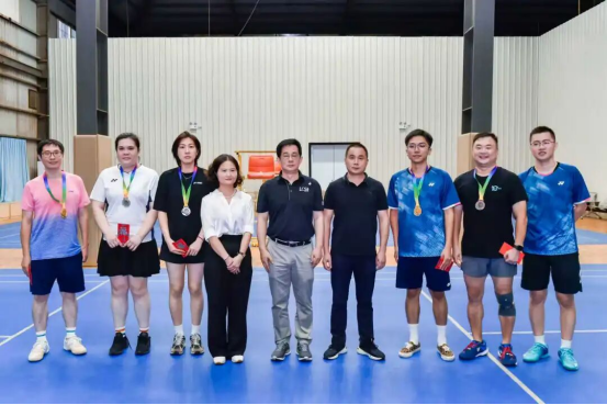 為慶祝中華人民共和國成立76周年,深入貫徹習近平總書記關于體育工作的重要論述精神,積極開展全民健身運動,增強職工身體素質和團隊凝聚力,9月29日,海峽出版發行集團直屬機關工會舉辦2025年“迎國慶”羽毛球比賽。集團黨委書記、董事長黃葦洲,黨委副書記黃輝昌為獲獎選手頒獎。